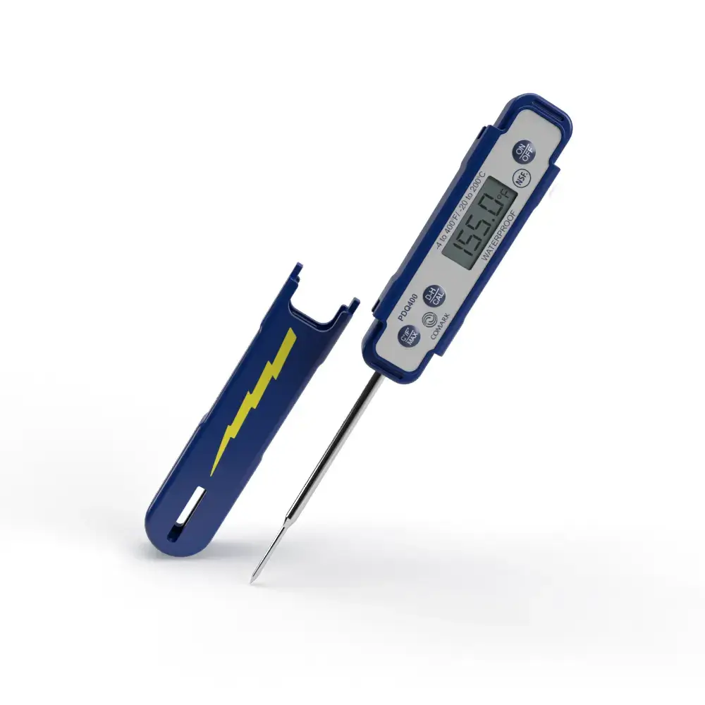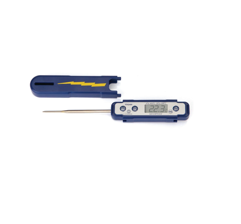 Comark’s PDQ400 waterproof digital thermometer has a quick response time of six seconds or less.