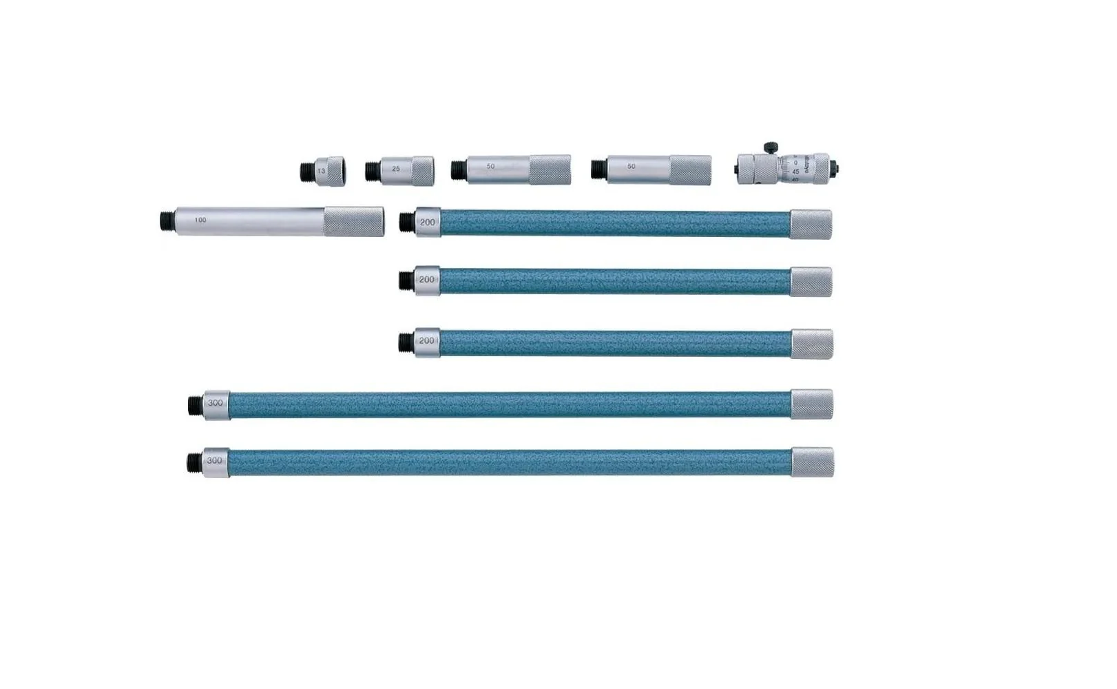 • Extension Rods: 13mm, 25mm, 50mm (2 Pcs), 100mm, 200mm (3 Pcs), 300mm (2 Pcs)