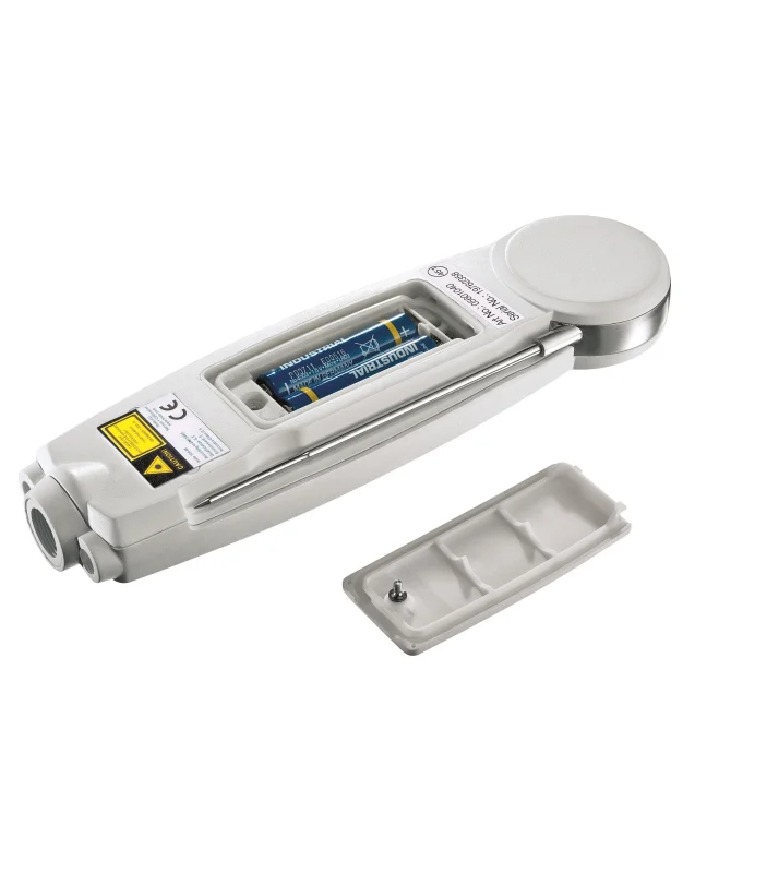 The thermometer is immediately activated when the probe sensor is folded down. Simply press a key to start the infrared measurement. The results are presented on a large, easy-to-read display. Because the keys themselves are easy to understand, there is no need to instruct individuals on how to use the thermometer. Last but by no means least, the food safety infrared thermometer is waterproof and IP65 rated.