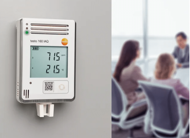 Monitoring temperature, humidity, CO2 and atmospheric pressure with the WiFi data logger testo 160 IAQ