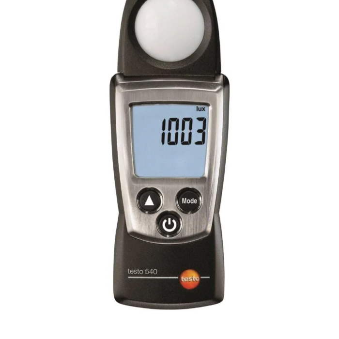The testo 540 is a small handheld light intensity meter configurable to read values in Lux of Foot Candles. It is the perfect tool to check or measure light intensity and distribution in exhibit halls and display cases since the photo sensor is adjusted to spectral sensitivity of the human eye. The useful hold function stabilizes measurement value. The display of the Max and Min values alternate with the press of a button. The testo 540 light meter comes with the belt case, protective cap, wrist strap, and a set of 2 AAA batteries.