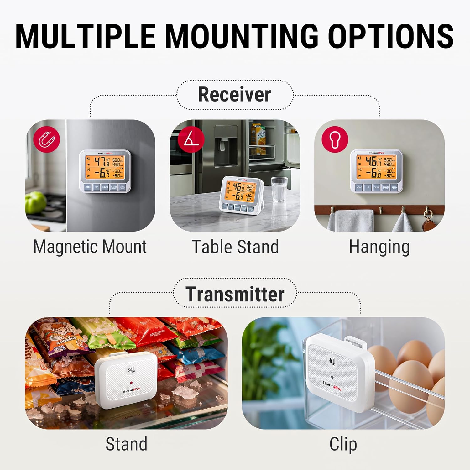ThermoPro TP210B Freezer Refrigerator Thermometer with Dual Sensors