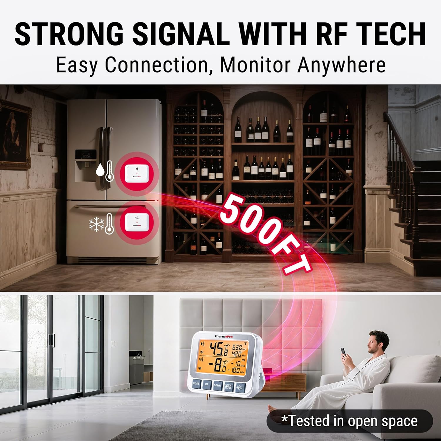 ThermoPro Refrigerator Thermometer with Large Backlit LCD Display Waterproof Freezer Fridge Thermometer
