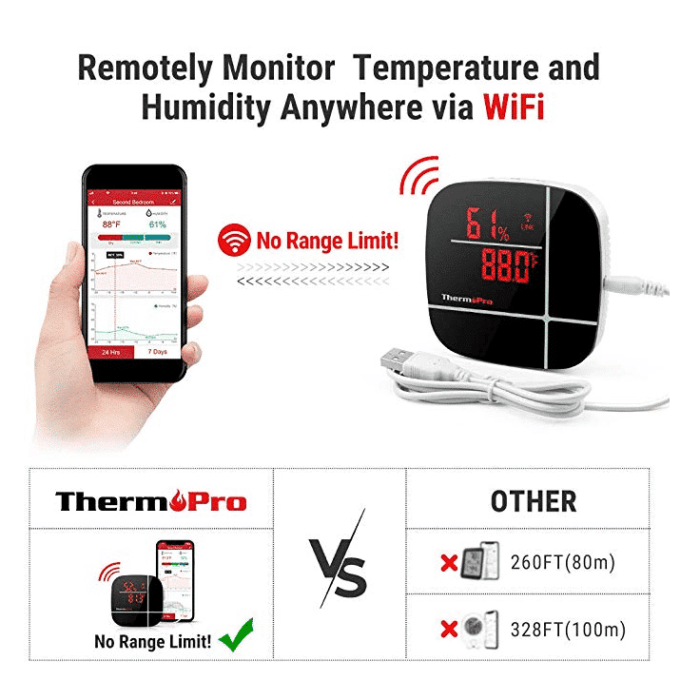 ThermoPro TP90 Smart WiFi Digital Household Thermometers Hygrometer Humidity and Temperature Sensor