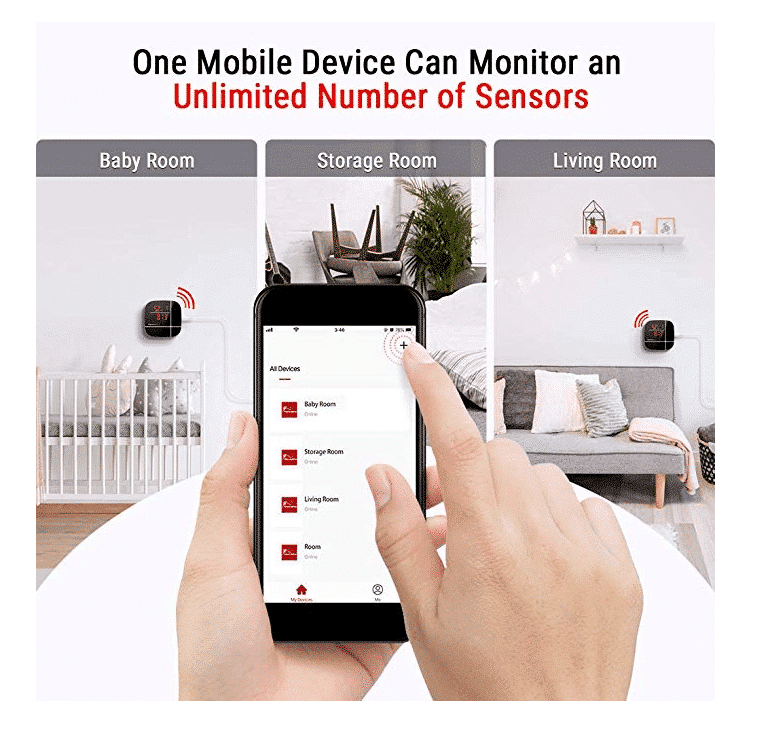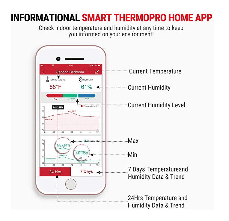 ThermoPro WIFI remote sensor not only quickly and accurately broadcasts the current temperature and humidity of each room, it allows you to be able to conveniently look up historic temperature and humidity readings from any location via an APP installed on your cellphone.