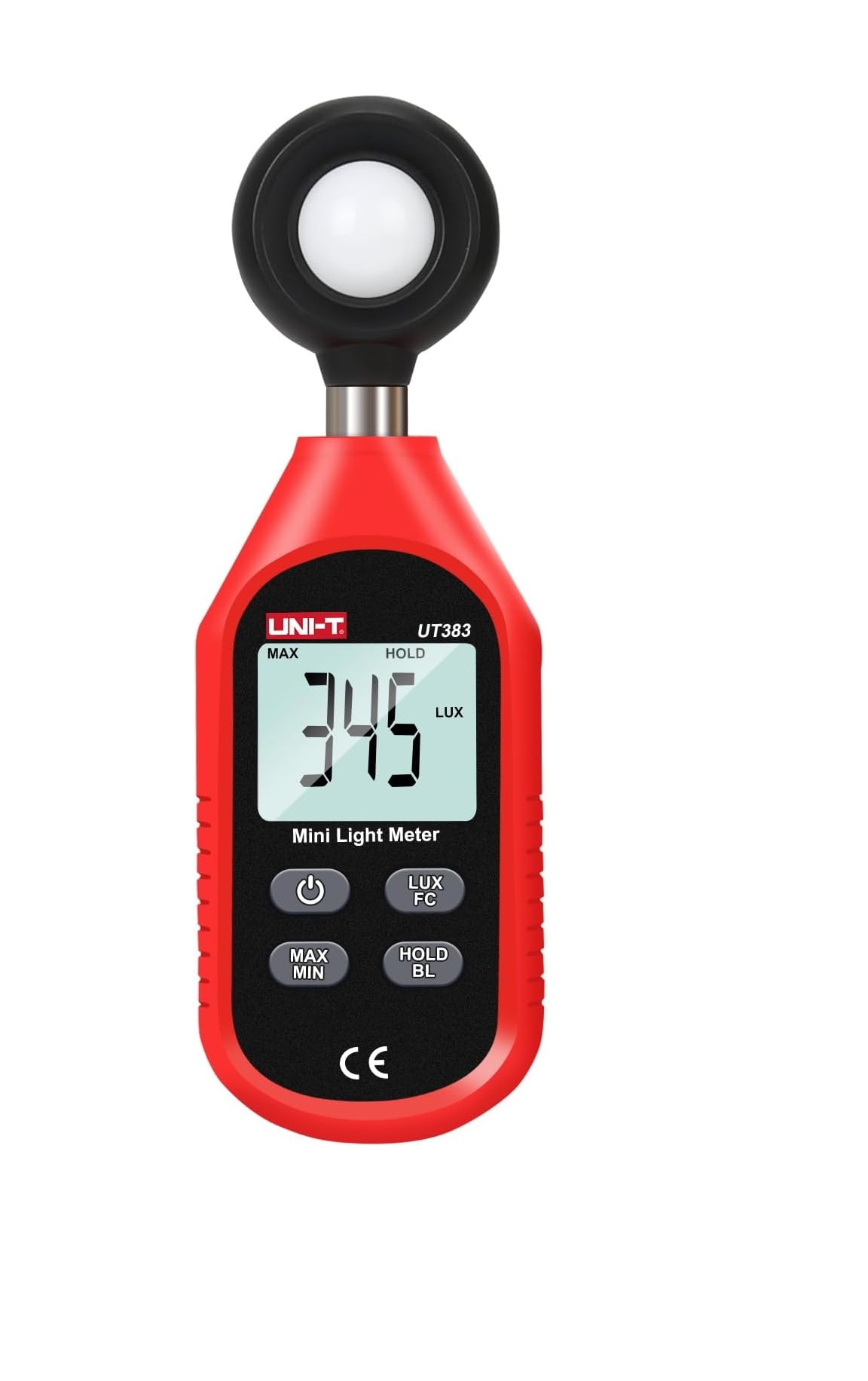 - UNI-T professional digital illuminance meter UT383. Effectively measures light intensity and display results in units of Lux or FC. Range: 0 to 199,900 Lux / 0 to 18,500 Fc. High accuracy of +/-(4 %+8)