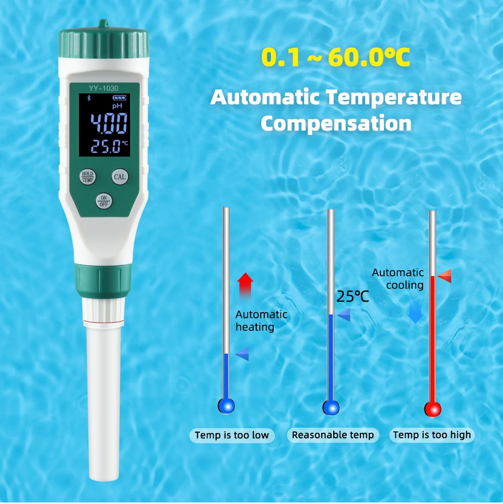 Comprehensive Information Display: Simply immerse the pH meter electrode in the solution to be tested, and readings are quickly displayed on a large LCD display. multi-parameter display at the same time, mobile phone APP control backlight display.